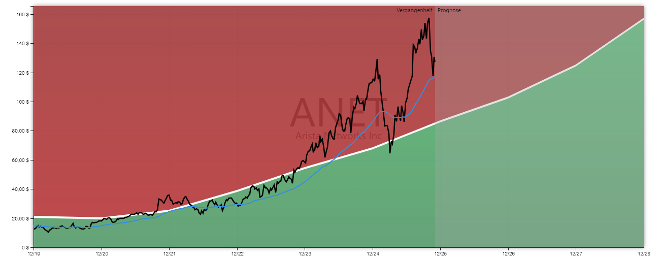 In der Vergangenheit gab es bereits Phasen, in denen Arista Networks stark überbewertet war. Ein Beispiel ist Ende 2021: Auch damals zeigte die Analyse eine negative Sicherheitsmarge von über 40 %. Kurz darauf setzte eine längere Korrektur ein, in deren Verlauf die Aktie zeitweise sogar unter den inneren Wert rutschte. Erst durch das fortgesetzte Unternehmenswachstum konnte sich der Kurs später wieder deutlich nach oben lösen.