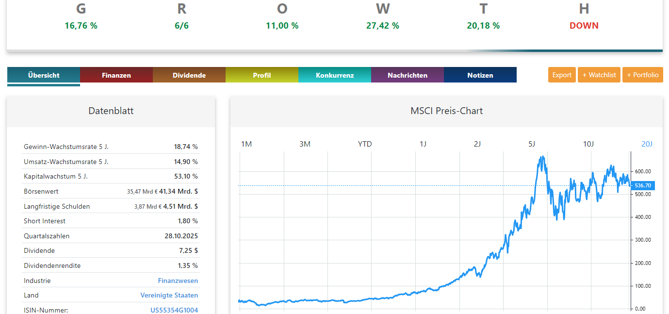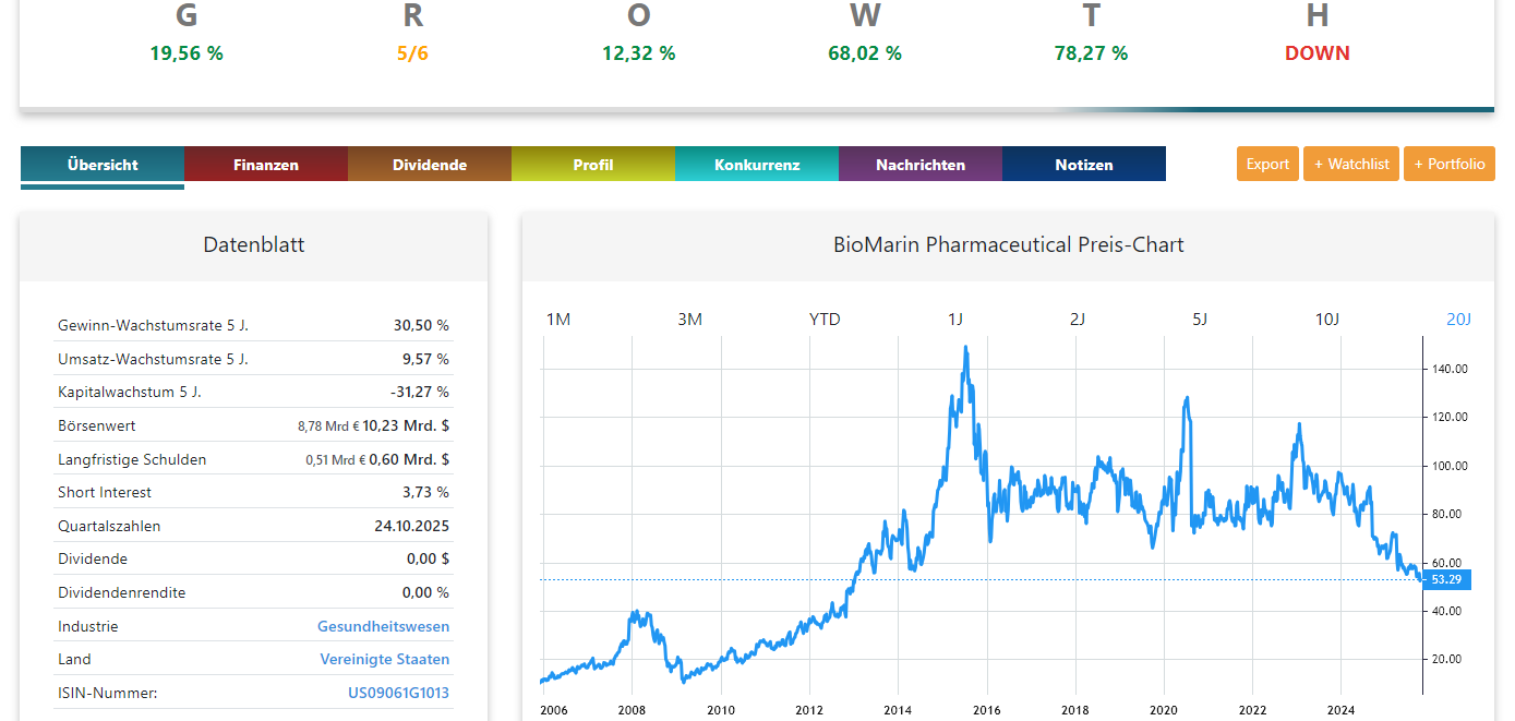 Die obigen Kennzahlen hat die GROWTH Investing Software in Sekunden aggregiert und visualisiert. Statt stundenlang Geschäftsberichte zu wälzen, erhalten Sie auf einen Blick Risiko- und Trendbewertungen, realistische Wachstumsschätzungen und eine sofortige Einschätzung der Sicherheitsmarge.