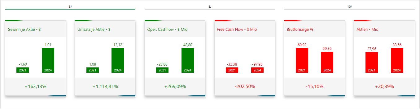 Das Umsatzwachstum von 63,8 % ist besonders bemerkenswert. Entscheidend ist hier, dass die Dynamik im Umsatz und nicht nur im Gewinn liegt. Ein schnelles Gewinnwachstum bei stagnierenden oder nur leicht wachsenden Umsätzen kann ein Warnsignal sein, weil häufig lediglich Kosten verschoben oder Sondereffekte genutzt werden. Im Fall von TransMedics basiert die Dynamik jedoch auf einem massiv steigenden Umsatz, was auf eine solide Nachfrage nach den Produkten schließen lässt.